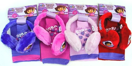 This Dora The Explorer three piece set comes with everything needed to hit the slopes in style this winter!! The Dora set includes a pair of fur ear muffs, a pair of gloves and a scarf. Battle the cold weather with Dora on your side (neck, hands and ears too!!) Perfect in time for the holiday season.